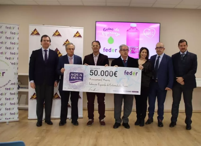 Aquadeus, empresa de agua mineral natural integrada en Grupo Fuertes, ha donado 50.000 euros a la Federación Española de Enfermedades Raras (FEDER) para ayudarles al fomento de la investigación de la búsqueda de diagnóstico y posibles tratamientos. En España se estima que existen más de tres millones de personas afectadas por algún tipo de dolencia poco frecuente.