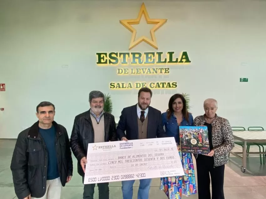 Estrella de Levante hace entrega de un cheque por valor de 5.362 euros, recaudados gracias a la venta solidaria de la ‘Cerveza de Navidad ‘ en el mercadillo navideño de Murcia. Además, este importe donado al Banco del Alimentos del Segura también se ha conseguido gracias a la venta benéfica del libro ‘Murcia Loves Indie’, un proyecto de la ilustradora Virginia Sánchez que ha contado con la colaboración de la Fundación Estrella de Levante.