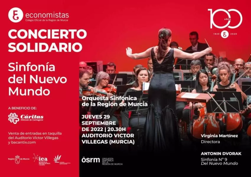 El decano del Colegio de Economistas, Ramón Madrid, señala que "la batuta de nuestra directora más querida, Virginia Martínez, y la gran música de Anton Dvorak, con la Sinfonía Nuevo Mundo, nos permitirán reunirnos por una buena causa solidaria a favor de Cáritas". Este acto se encuadra en las celebraciones del Centenario de la profesión.