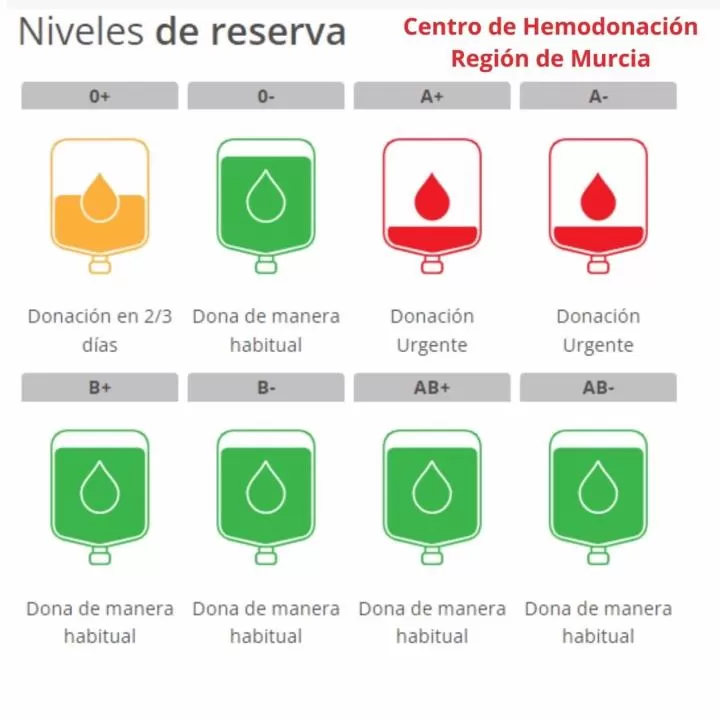 El Centro Regional de Hemodonación ha hecho un llamamiento urgente a la población de entre 18 y 65 años, en especial de los grupos A+, A- y 0+, para que acuda a donar sangre ante la escasez de las reservas para atender la demanda de los hospitales murcianos.