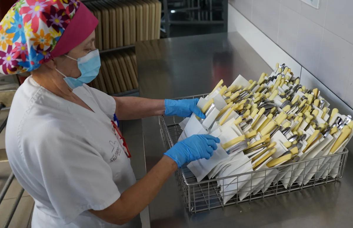 El servicio de cocina para pacientes del hospital Virgen de la Arrixaca ha eliminado de las bandejas que se distribuyen las bolsas que contenían los cubiertos, en su línea de minimizar el uso de plásticos descartables.