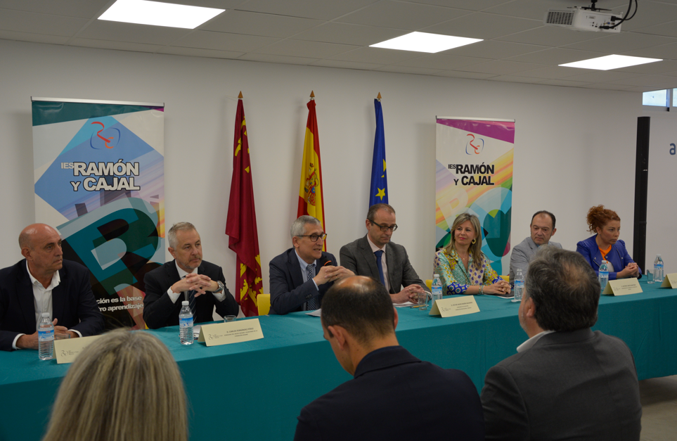 El consejero de Educación, Formación Profesional y Empleo, Víctor Marín, asistió hoy a la presentación del ‘Proyecto FP sostenible: La huerta de Murcia como germen de belleza y salud’, que desarrolla el IES Ramón y Cajal de Murcia, y consiste en la creación de un aula-rebotica de farmacia, que cuenta con un laboratorio de formulación magistral y sirve para formar a los alumnos futuros técnicos en farmacia.