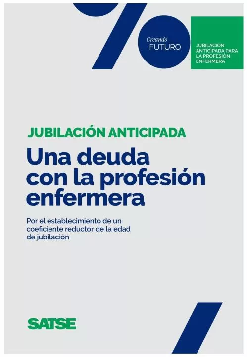 Como rezan los carteles distribuidos en todas las comunidades autónomas, la jubilación anticipada voluntaria es una 'Deuda con la profesión enfermera' que SATSE viene reclamando desde hace años, en base a numerosos estudios nacionales e internacionales que concluyen que las condiciones laborales de las enfermeras y enfermeros van deteriorando de manera progresiva su estado físico y psicológico y provocan mayores problemas de salud.