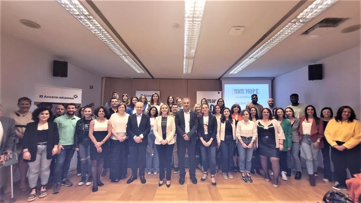 La consejera de Política Social, Familias e Igualdad, Conchita Ruiz Caballero, ha clausurado este jueves la jornada de la ONG Accem, enmarcada en el programa nacional 'Tents of Hope', con el que se pretende visibilizar y dar a conocer el talento de las personas refugiadas, además de ofrecerles asesoramiento jurídico, atención psicológica, clases de español, acogida y apoyo social.