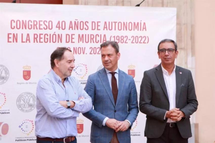 Más de 30 personalidades del ámbito académico, político, institucional y de los medios de comunicación darán voz a los '40 años de autonomía en la Región de Murcia', en un congreso organizado por la Comunidad y la Universidad de Murcia (UMU), en el marco de la Cátedra y Observatorio Políticas Públicas de la UMU, que tendrá lugar los días 8, 9 y 10 de noviembre en los museos Arqueológico y de Bellas Artes de Murcia, según han informado fuentes de la Comunidad en una nota de prensa.