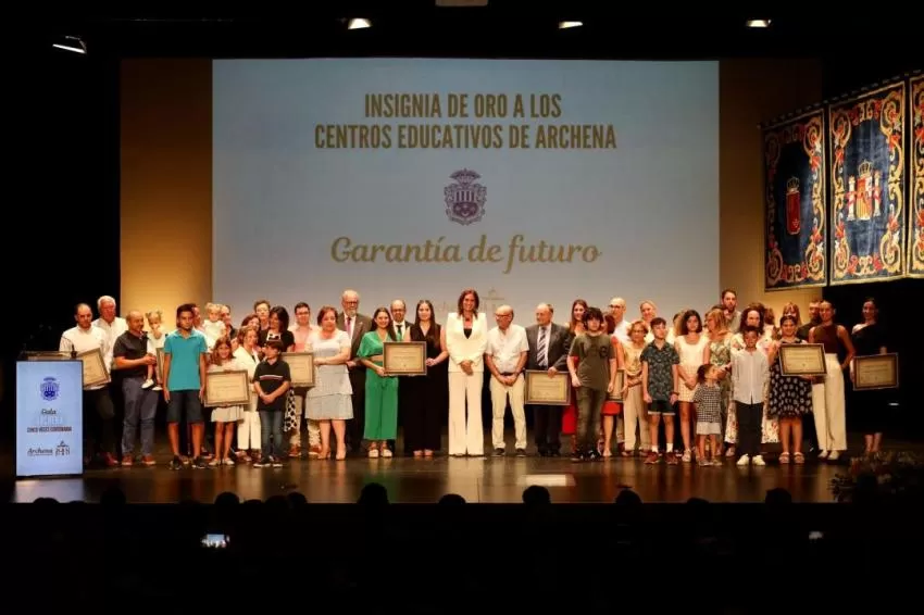 Antes de recibir cada uno de los directores de los centros educativos su galardón, la primera autoridad dijo que “con la entrega de la insignia de oro de la villa que hoy otorgamos, queremos reconocer la importancia de los 11 centros educativos de Archena y de todos sus docentes a lo largo de la historia, porque los archeneros y archeneras somos así: gente orgullosa y apasionada por su tierra. Archena es grande por sus gentes, y en esta gala, en el 560 aniversario de la fundación de Archena, reconocemos el valor de los archeneros y de sus instituciones, en este caso educativas”.