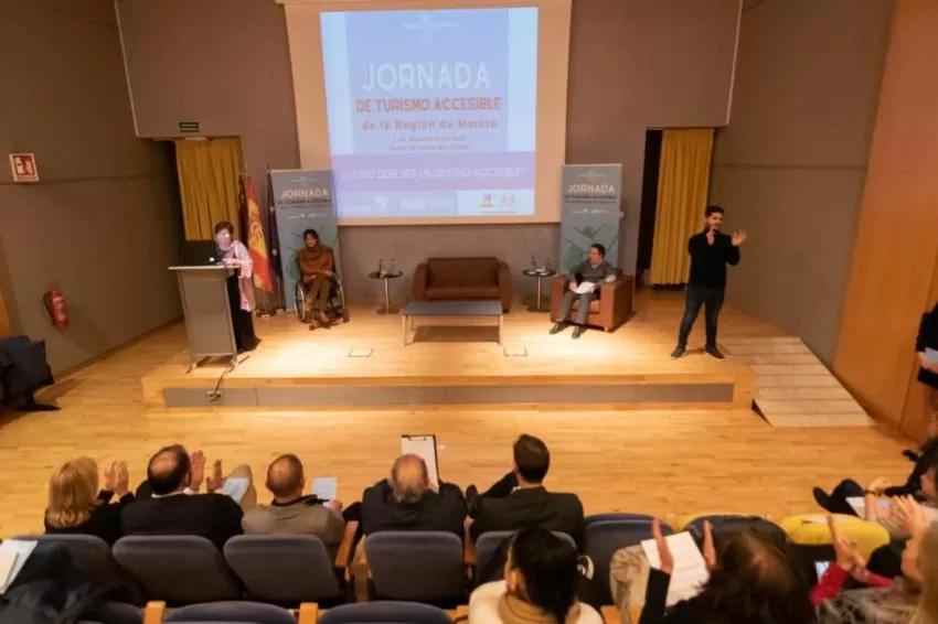 La siguiente mesa redonda se centró en experiencias profesionales y casos de éxito. Katerina Radilkova, secretaría de la Asociación Profesional de Guías de Turismo, señaló "no sólo intentamos adaptar nuestras visitas a posibles barreras arquitectónicas, también nuestra comunicación". El siguiente turno fue para el conservador de museos y responsable del Museo Arquelógico regional, Luis de Miquel, que recordó que "un sitio público debería ser igual a accesibilidad. No se puede hacer ninguna actuación de accesibilidad sin contar con los profesionales de la discapacidad". Por su parte, Chus González, técnico de Turismo y playas del Ayuntamiento de San Javier señaló: "en las playas se necesitan plazas de aparcamiento, zonas de sombra, pasarelas de hormigón, rampas y pasamanos, baños y vestuarios, ayuda al baño, zonas de baño adaptadas, y banderas para daltónicos". La última intervención correspondió a Verónica Vera, técnico de la Concejalía de Turismo del Ayuntamiento de Cartagena, que apuntó: "en cuanto a los alojamientos destacamos un proyecto pionero en España que mejora la accesibilidad cognitiva en los hoteles de Cartagena".