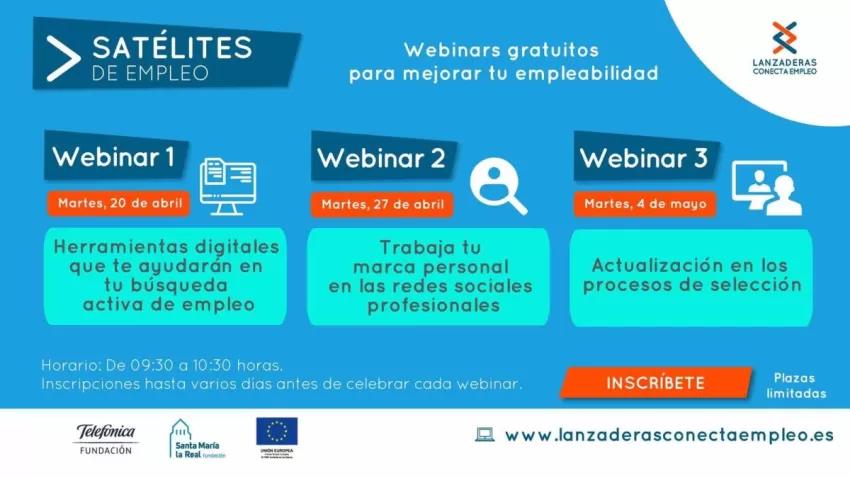 Personas desempleadas, de entre 18 y 60 años, ya pueden inscribirse en los tres talleres online gratuitos 'Satélites de Empleo' que se celebrarán los días 20 de abril, 27 de abril y 4 de mayo. Se trata de sesiones virtuales totalmente gratuitas que, durante una hora, ofrecen a sus participantes consejos prácticos de orientación laboral y búsqueda de empleo.