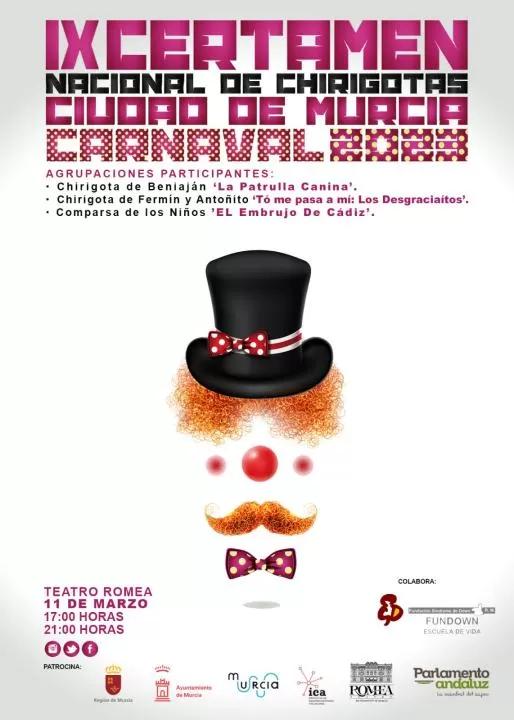 La Región celebrará este fin de semana la IX edición del Certamen Nacional de Chirigotas Ciudad de Murcia, con un evento en el que no faltará la música y el baile. Durante el encuentro, se hará entrega del ‘Pito Solidario’, una distinción que este año recaerá en la Fundación Síndrome de Down de la Región de Murcia.