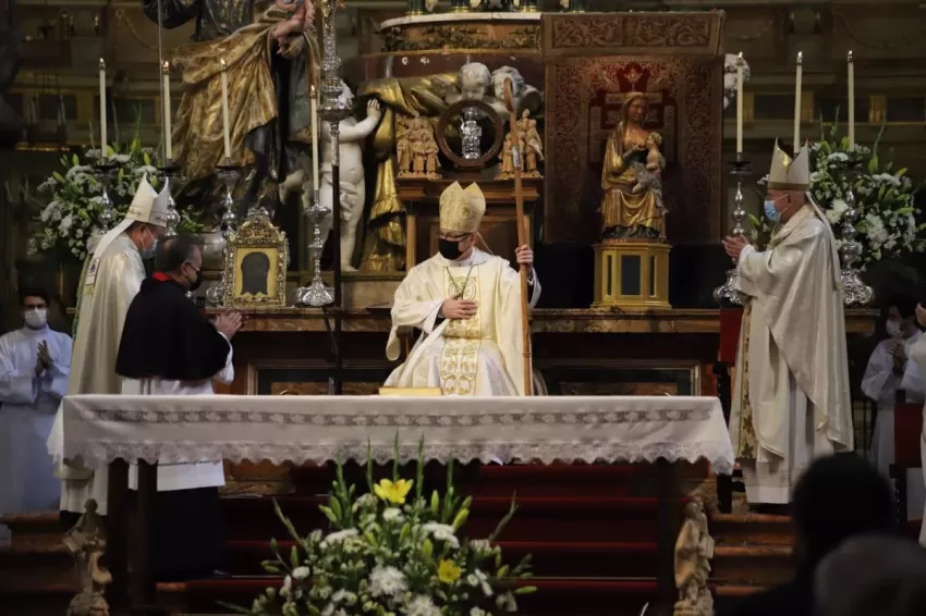 Tras su lectura, Chico se ha sentado en la cátedra y el nuncio le ha entregado el báculo, simbolizando así la sucesión apostólica y la continuidad pastoral. Las campanas de la catedral han repicado en ese momento, anunciando que Jaén tiene nuevo pastor, mientras representantes de las diferentes realidades de la Iglesia diocesana han saludado a su nuevo obispo.