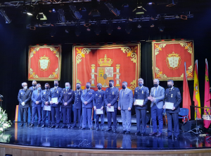 La Cruz roja al Mérito Policial ha sido para la agente María de los Ángeles García y para el inspector Damián Muñoz y la Cruz blanca al Mérito Policial para la subinspectora Inmaculada Jiménez y los agentes José Beltrán, Sonia Campillo y Tomás Monteagudo.