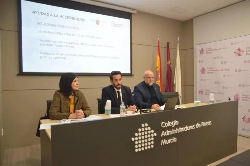 El objetivo del encuentro era dar a conocer esta línea de ayudas incluida en la estrategia 'Haciendo Hogar', "para que estos profesionales trasladen la convocatoria a las comunidades de propietarios de la Región y les ayuden en su tramitación".