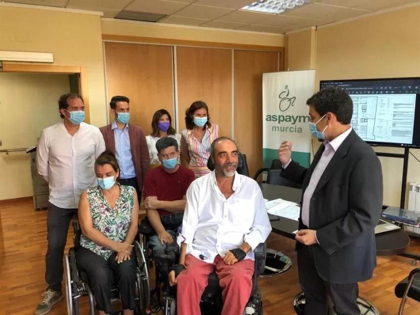 El consejero de Fomento e Infraestructuras, José Ramón Díez de Revenga, ha hecho este anuncio durante un encuentro con el presidente de Aspaym, José Gracia, y parte de su equipo responsable de este proyecto que se desarrollará en un terreno ubicado en la pedanía murciana de Puente Tocinos.