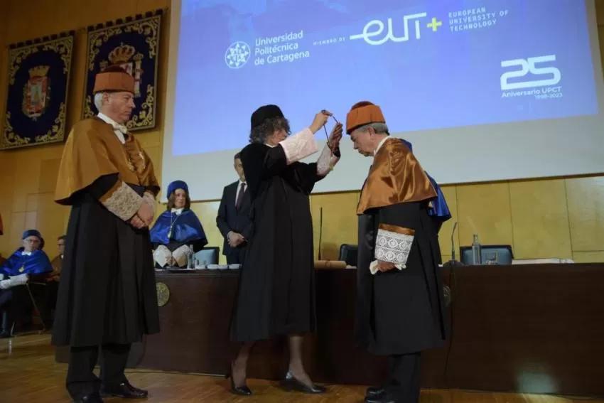 El acto, que ha estado amenizado por el quinteto de viento clásico del Conservatorio de Música de Cartagena, dirigido por José Vicente Rosell Climent, también ha incluido la tradicional entrega de premios e investidura de nuevos doctores.