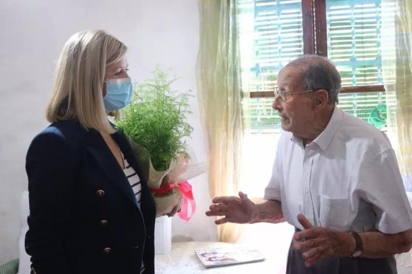 La concejala de Mayores, Vivienda y Servicios Sociales del Ayuntamiento de Murcia, Paqui Pérez, ha visitado este miércoles, en su domicilio de Barriomar, a José Balsalobre Monteagudo, usuario del servicio de atención domiciliaria desde 2010, para felicitarlo y hacerle entrega de un pequeño detalle y de una tarta por sus 100 cumpleaños, que cumplió el pasado mes de marzo.