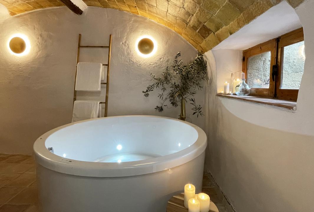 Cuenta con un salón equipado con una chimenea como protagonista, cocina completa y dos dormitorios, un patio y la joya de la corona: una antigua bodega convertida en zona de jacuzzi.