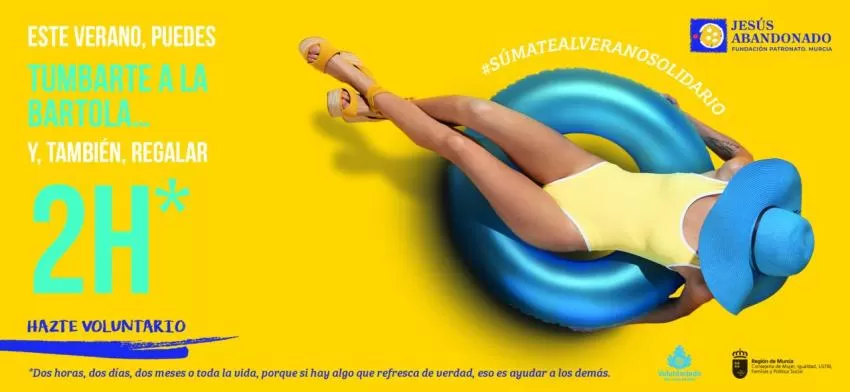 A través de mensaje ingeniosos, “animamos a la sociedad murciana a vivir un verano solidario de la mano de Jesús Abandonado”, destaca el área de voluntariado de la Fundación, desde donde señalan que “buscamos personas con ilusión, ganas, empatía, cercanía y respeto por los demás”.