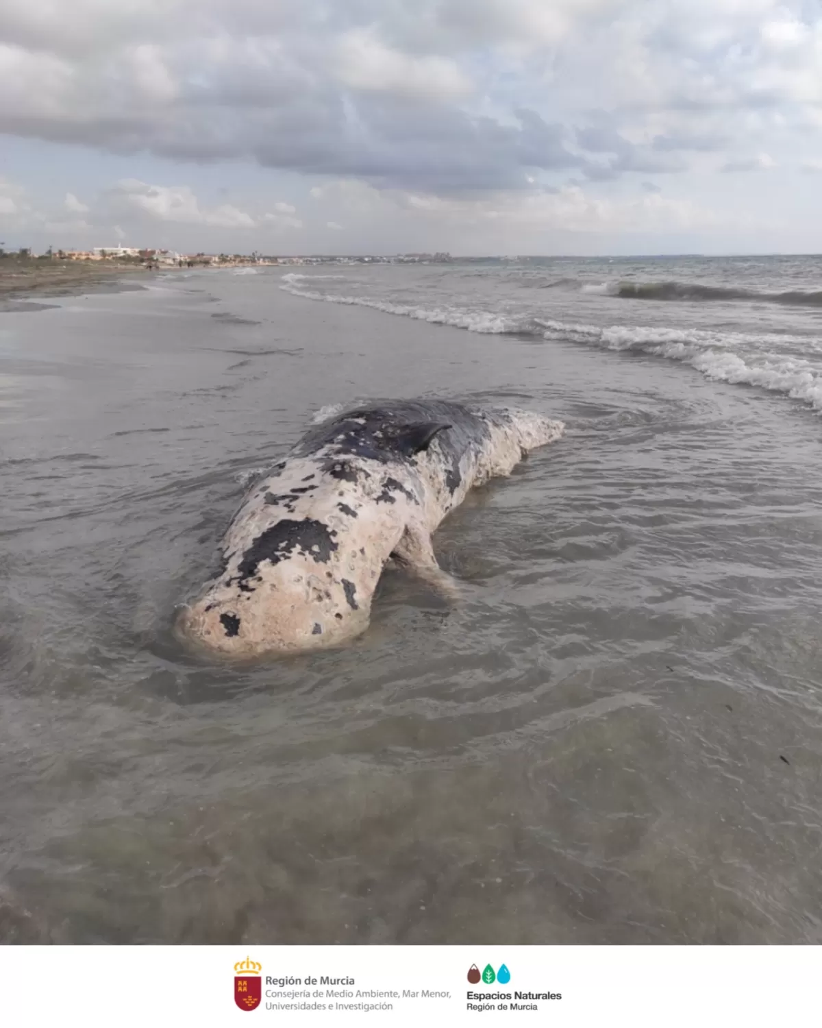 "Si te encuentras un cetáceo, tiburón o tortuga marina en la playa, viva o muerta, llama al 112 e informa", ha señalado la dirección del Parque Regional.