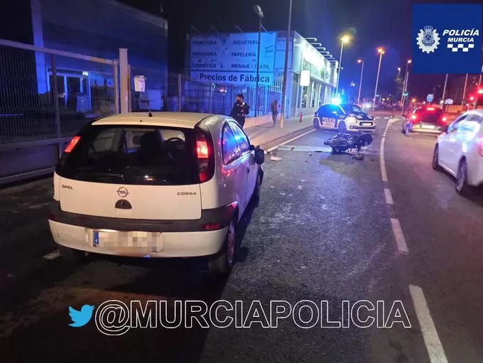 El primero de los accidentes se produjo en el Barrio del Infante de Murcia, hasta donde se desplazó una unidad motorizada de la Policía Local. Los agentes detuvieron al conductor de la motocicleta por cuadruplicar la tasa de alcohol, así como a otro varón que no estuvo de acuerdo con la actuación policial y atentó contra los agentes.