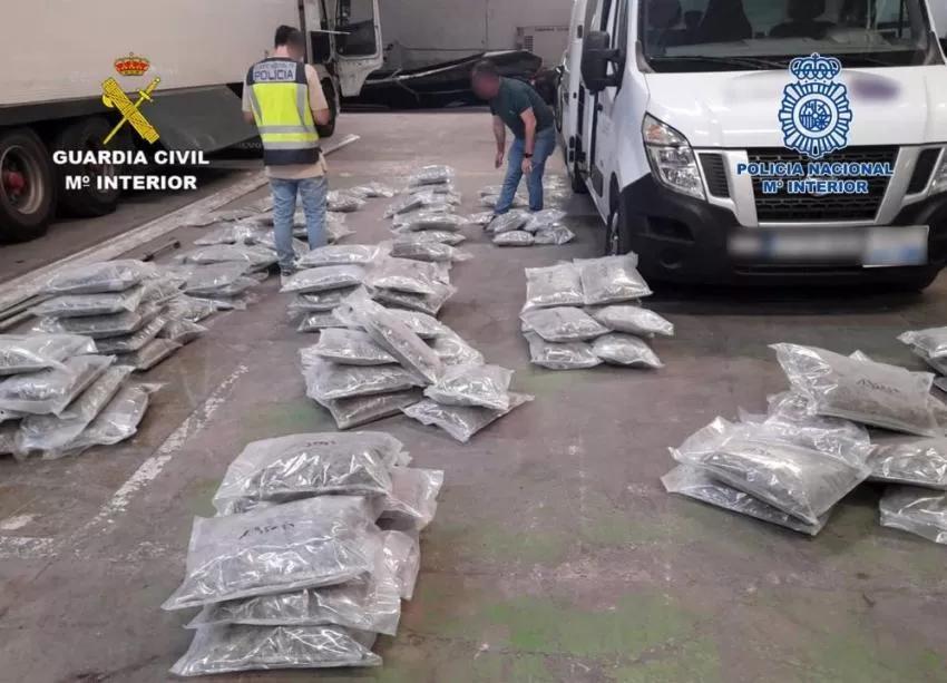 En el marco de la operación se han incautados 967 kilogramos de marihuana, 158 kilogramos de hachís, seis camiones con remolque y siete vehículos de alta gama. Los alimentos intervenidos en buen estado fueron entregados a los Bancos de Alimentos de Murcia y Bilbao.