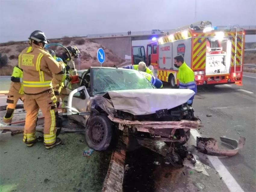 Servicios de emergencia han rescatado, atendido y trasladado al hospital a cuatro hombres de entre 30 y 48 años de edad, que han resultado heridas con lesiones de diversa consideración al colisionar dos turismos en la carretera N-301, a la altura del término municipal de Cieza.