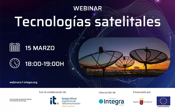El webinar 'Tecnologías satélitales' tendrá lugar mañana martes, 15 de marzo, de 18:00 a 19:00 horas. No podrá verse en diferido, por lo que, para poder seguirlo, hay que inscribirse en el siguiente enlace: https://webinars.f-integra.org/proximos-webinars/tecnologias-satelitales-112.