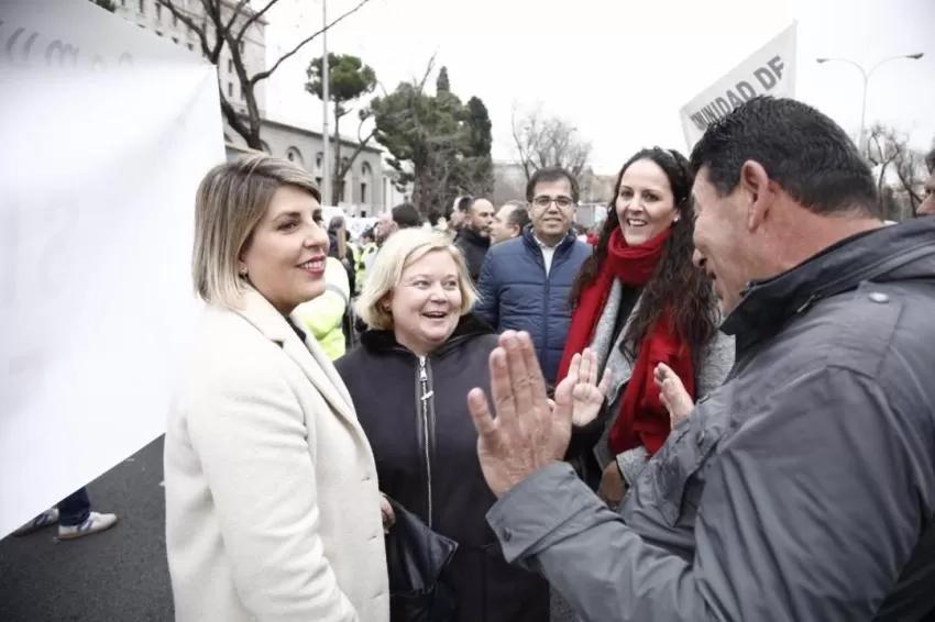 La alcaldesa de Cartagena, Noelia Arroyo, ha asistido este miércoles a la manifestación frente al Ministerio para la Transición Ecológica y el Reto Demográfico (Miteco) en apoyo a los agricultores y contra el "recorte" del trasvase Tajo-Segura.