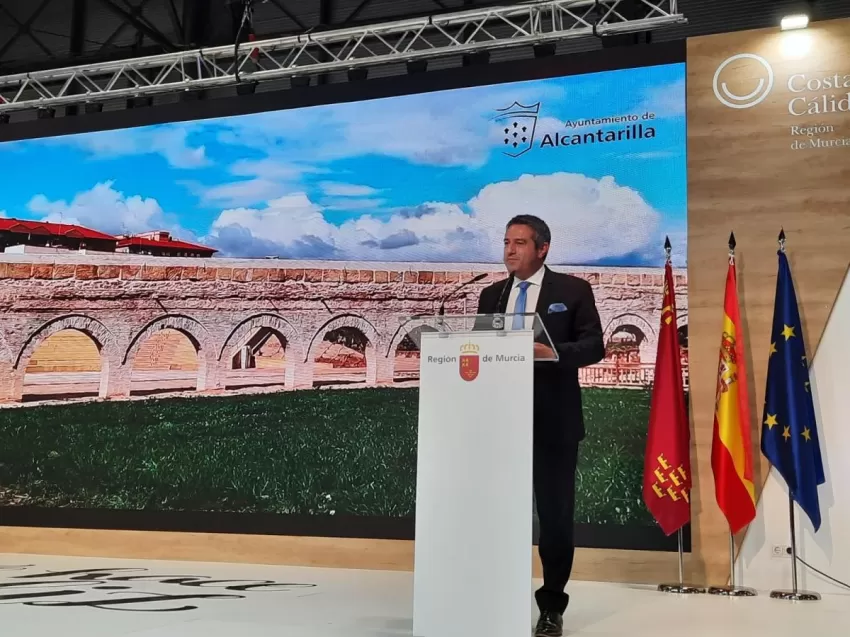 El alcalde, durante su presentación en el stand de la Región de Murcia, hizo hincapié en que "Alcantarilla es donde la huerta nace, con nuestro entramado de acequias y el magnífico aprovechamiento del agua a lo largo de la historia, desde la creación de la Acequia Mayor en la Edad Media y con el Acueducto y la Noria, grandes infraestructuras hídricas que aún hoy están en pleno uso".