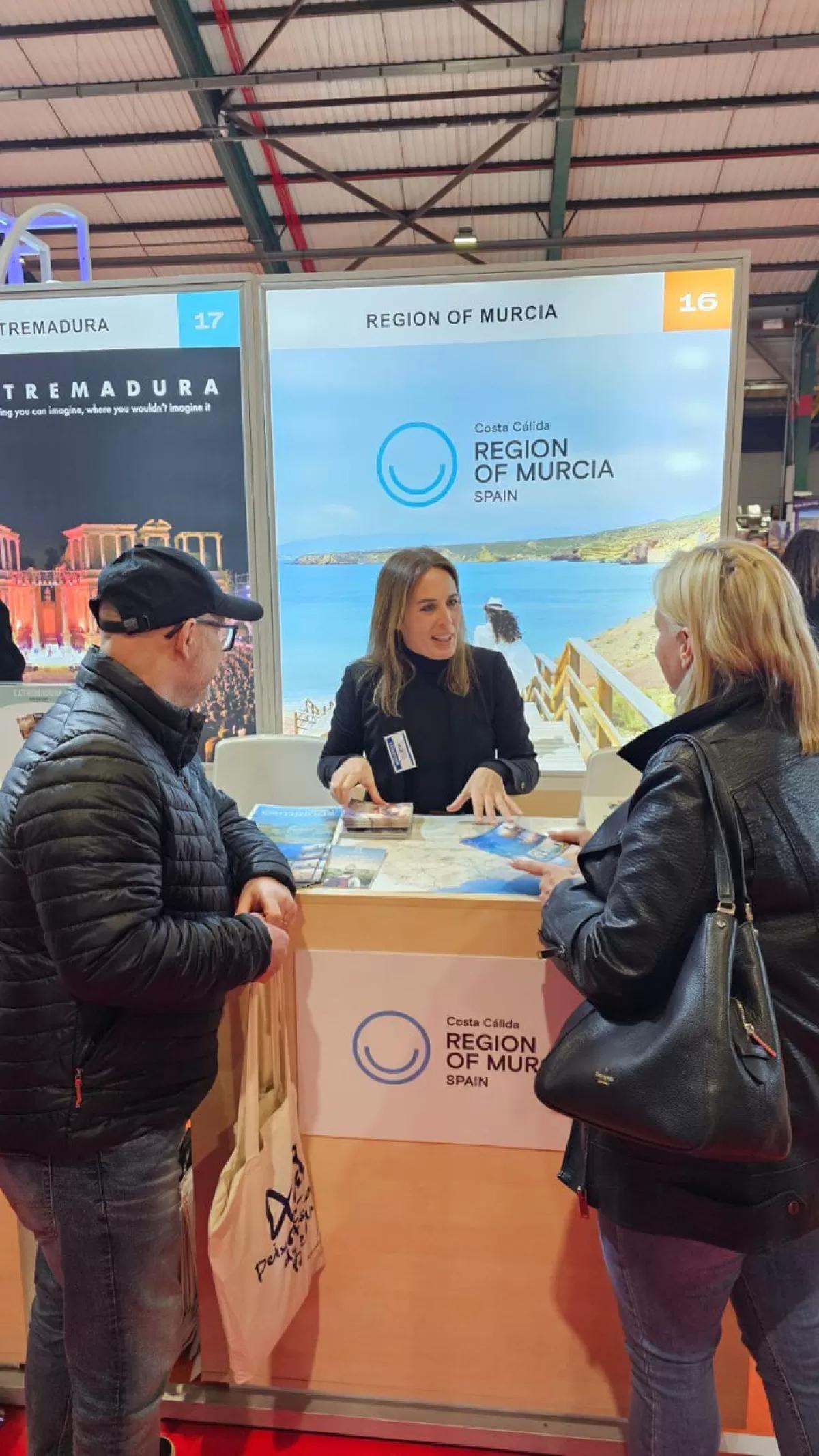 La delegación regional, conformada por una representación del Instituto de Turismo de la Región de Murcia y de la Asociación Profesional de Empresarios de Hoteles y Alojamientos Turísticos de la Costa Cálida, participó en esta feria con un mostrador incluido en el estand de Turespaña. En él se promocionó como producto estrella el Año Jubilar de Caravaca de la Cruz y sus caminos de peregrinación, además de su oferta de turismo azul y de naturaleza, de turismo activo y de golf.