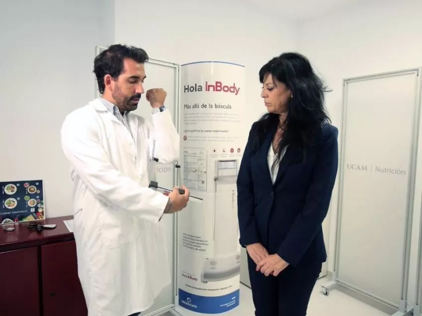 La Universidad Católica sigue incrementando su apuesta por la salud, con la creación de su clínica universitaria 'UCAM Nutrición'. En ella, los estudiantes de último curso tanto del Grado en Nutrición Humana y Dietética como de los másteres en Nutrición Clínica y en Deportiva desarrollan sus prácticas, donde aprenden, de la mano de profesionales, las técnicas necesarias para poder incorporarse al mercado laboral con las máximas garantías de calidad.