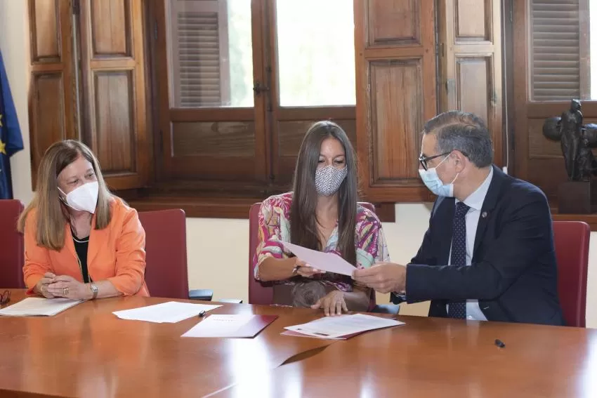 El rector, José Luján, y la presidenta del Colegio, Raquel Jódar, han firmado el acuerdo en un acto que ha tenido lugar en la Convalecencia, sede del rectorado, y que ha contado con la presencia de la decana de la Facultad de Biología, Alfonsa García Ayala.