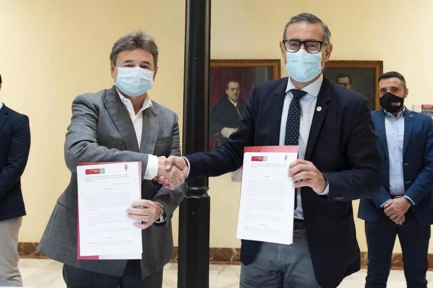 La Universidad de Murcia y el Real Murcia han firmado este viernes un convenio con el que se formaliza la colaboración que ambas instituciones mantienen en ámbitos que van desde la promoción del deporte, el uso de las instalaciones deportivas o la realización de prácticas por parte del alumnado.