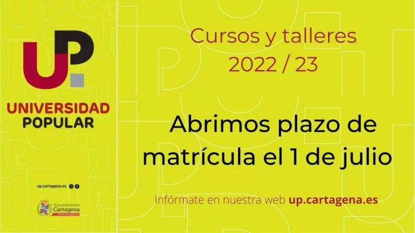 Este viernes, 1 de julio, comienza el plazo de matriculación en los 88 cursos incluidos en la oferta formativa de la Universidad Popular para el próximo curso 2022/2023, según han informado fuentes municipales en un comunicado.