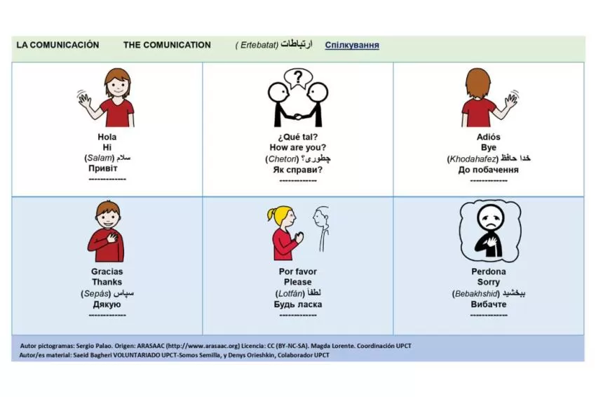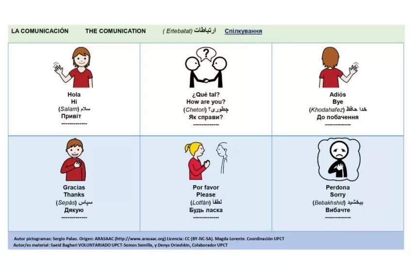 Los ciudadanos ucranianos que necesitan aprender español disponen ya de una herramienta sencilla desarrollada en la UPCT para aprender a mantener una conversación básica a través de pictogramas. Se trata del diccionario visual básico, que ofrece 246 pictogramas en cuatro lenguas: español, ucraniano, inglés y persa.