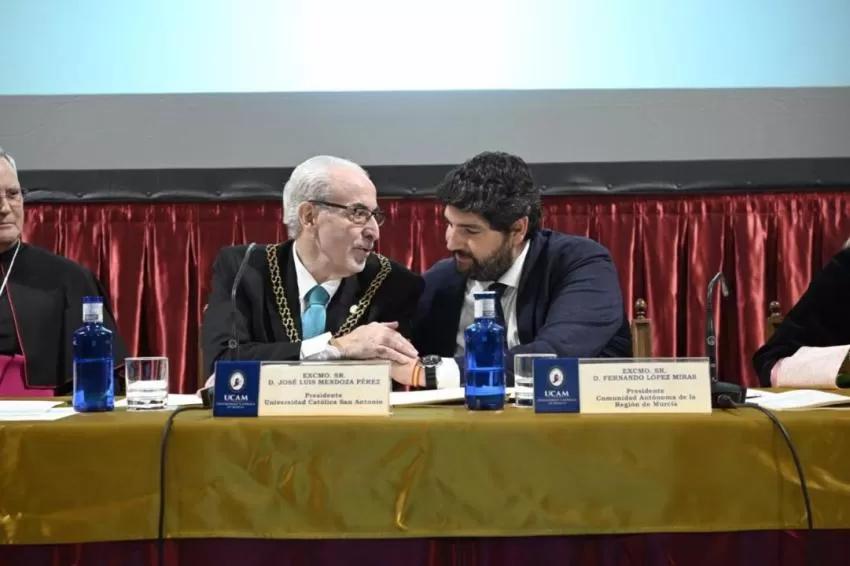 El presidente de la Comunidad, Fernando López Miras, ha afirmado este lunes, durante la apertura del curso académico 2022-2023 de la Universidad Católica San Antonio de Murcia, que las universidades de la Región de Murcia "se complementan y enriquecen unas a otras", dando forma a una "oferta diversa" y a un modelo universitario "del que podemos sentirnos orgullosos".
