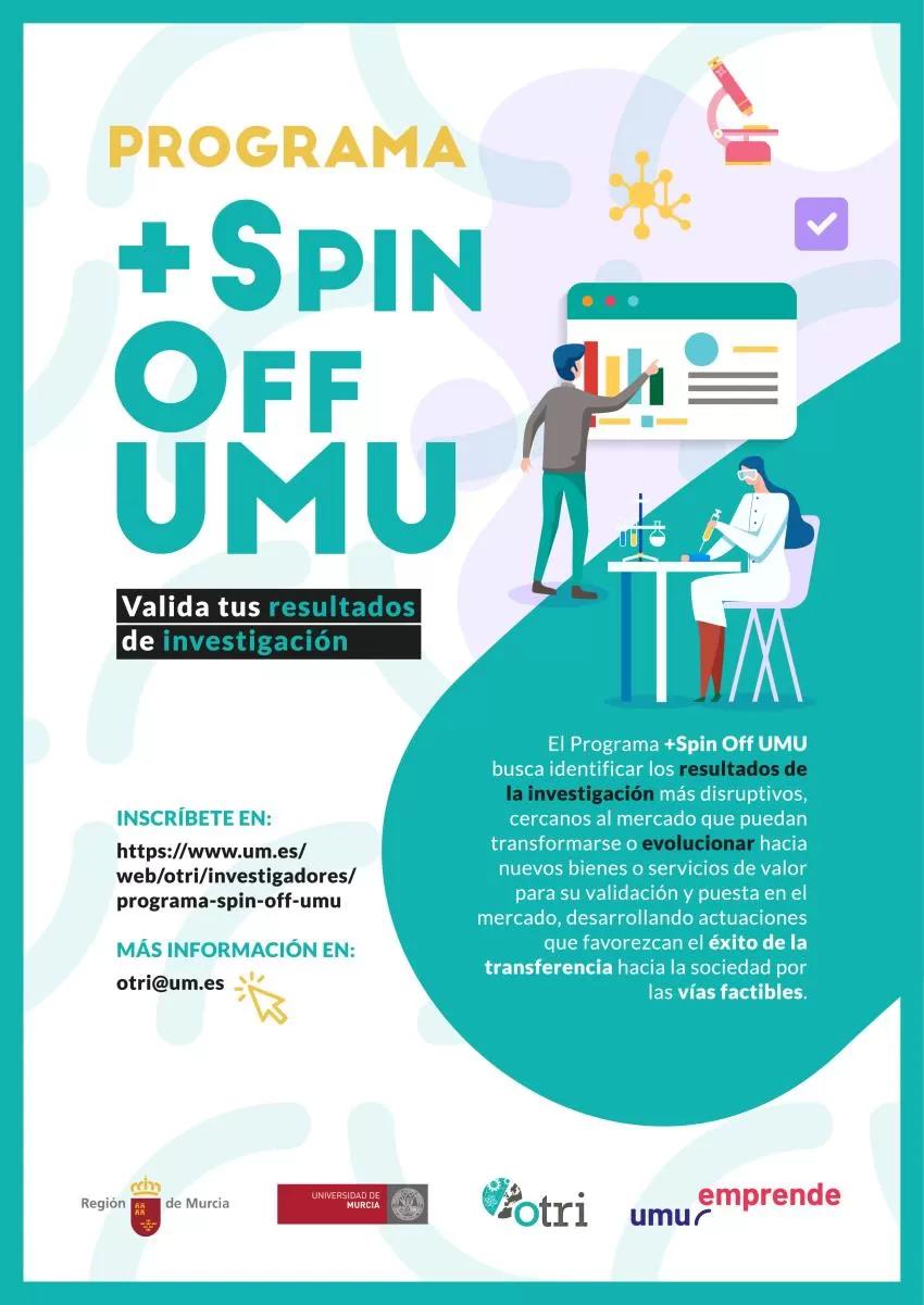 La Universidad de Murcia (UMU) ha presentado este martes los resultados del programa '+Spin Off', que cuenta con el apoyo de la Comunidad Autónoma a través de la Consejería de Empresa, Industria y Portavocía, y que tiene como objetivo acercar al tejido productivo la actividad investigadora que se desarrolla en esta institución docente, informaron fuentes de la universidad en un comunicado.