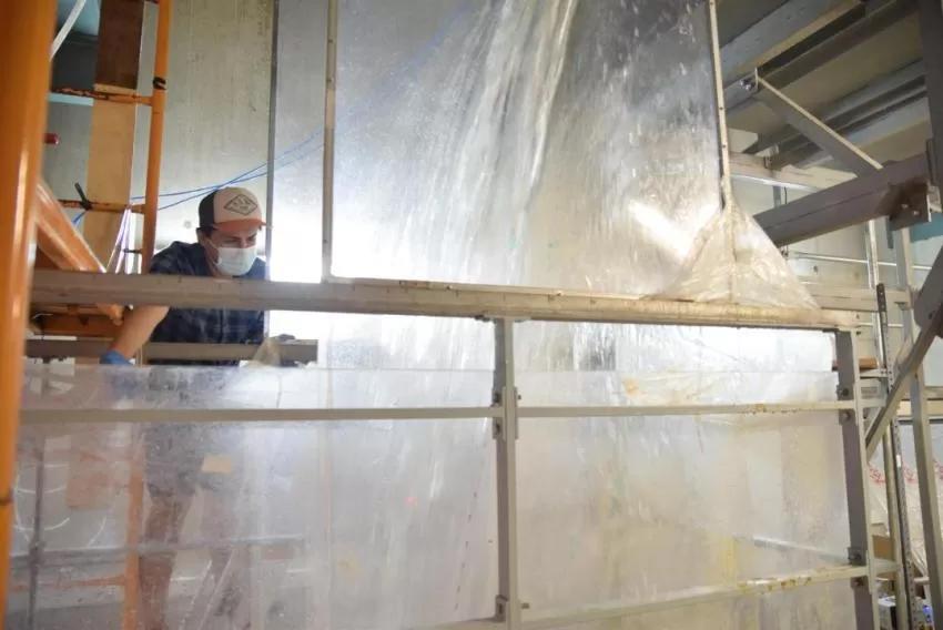 Investigadores de la Politécnica de Cartagena están estudiando la seguridad de las presas a través del análisis de la energía de los chorros turbulentos de sobrevertido en el Laboratorio de Ingeniería Hidráulica en el que se reproduce la situación de sobrevertido y su influencia en el cuenco de disipación.