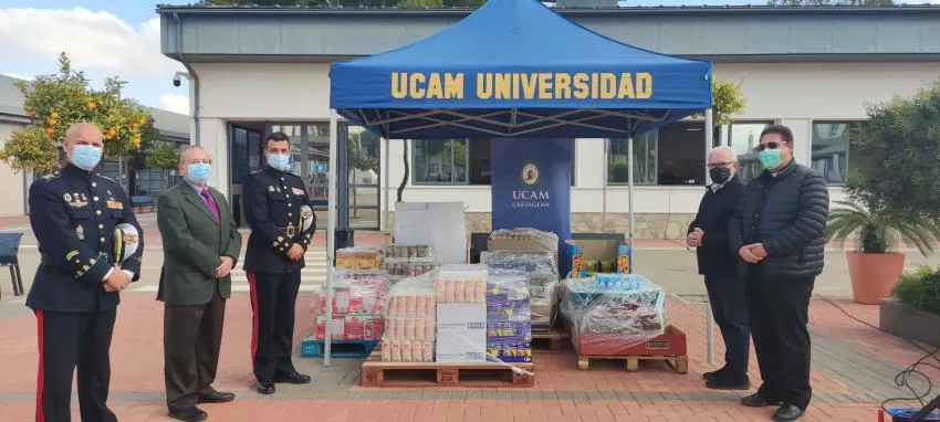 La donación se ha realizado en el campus de la UCAM en Cartagena, ciudad desde la que partirán los militares el 16 de diciembre andando hasta Caravaca de la Cruz con las mochilas cargadas de las aportaciones realizadas tanto por la Universidad Católica como por otras empresas hasta alcanzar los 3.400 kilos en una acción que se realiza por cuarto año.